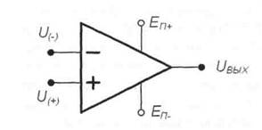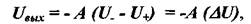 (6.1) где А - коэффициент передачи усилителя, не охваченного обратной связью; U. - напряжение на инвертиртирующем входе; U+ - напряжение на не-инвертиртирующем входе. Знак минус перед коэффициентом передачи (А) показывает, что вы-