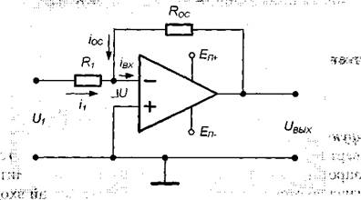 - Рис. 6.2. Принципиальная схема инвертирующего усилителя на ОУ