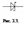 2.1.2. Диоды Шоттки В области СВЧ диапазона частот успешно применяются диоды на основе контакта металл-полупроводник, так называемые диоды Шоттки. В отличие от обычных р-п -переходов ток в них осуществляется только основными носителями заряда. В таких переходах отсутствуют процессы накопления и рассасывания неосновных носителей заряда в области базы и, поэтому, диффузионная емкость практически равна нулю. Быстродействие таких диодов определяется только барьерной емкостью перехода, которая за счет технологии изготовления и выбором оптимальной конструкции может составлять сотые доли пФ. Для изготовления диодов Шоттки применяются кремний и арсенид галлия, а в качестве металлических контактов - тонкие пленки Au, Aq, Al, Pt и других металлов. Особенно эффективны диоды Шоттки на основе контакта Au-GaAs-n -типа проводимости. Максимальная частота работы таких диодов достигает 100-ни На рисунке 2.3. приведено условно графическое обозначение диода Шоттки, а конструктивно они подобны импульсным диодам.