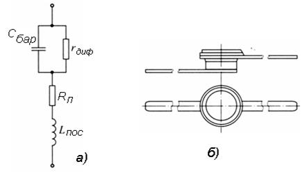 Рис.2.6. Эквивалентная схема а) и корпус б) туннельного диода