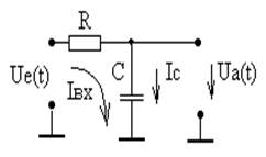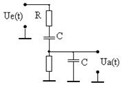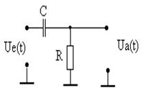 Фильтр верхних частот как дифференцирующее звено. Если приложить входное напряжение с частотой f<<fg, то тогда будет справедливо диф. уравнение:
