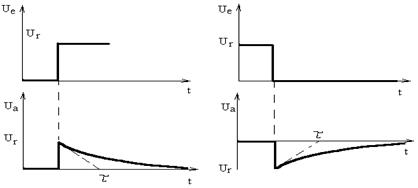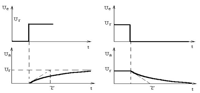 Установившееся значение Ua=Ur или Ua=0 (во втором случае). К этому значению кривые приближаются асимптотически. Поэтому в качестве меры времени установления выходного напряжения принята постоянная времени Время установления может быть найдено из соотношения (2):
