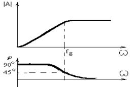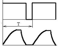 Если в качестве входного сигнала приложить напряжение прямоугольной формы с периодом Т, то экспоненциальная функция прерывается через каждую половину периода. Какое значение при этом будет достигнуто, зависит от соотношения Т/2 и Фильтр нижних частот, как интегрирующее звено. При f>>fg В установившемся режиме:
