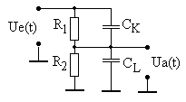 Для этого служит конденсатор Ск. Расчет параметров этой цепи следует производить таким образом, чтобы параллельное подключение емкостей к делителю напряжения обеспечивало тот же коэффициент деления, что и омический делитель. В этом случае на высоких и низких частотах получается одинаковое соотношение напряжений. Это возможно при условии Ск/СL=R2/R1. При оптимальном выборе элементов импульсы передаются без искажений.