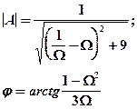 Описание в частотной области. Для расчета частотной характеристики запишем соотношение напряжений на входе и выходе схемы в комплексной форме (пропорционально сопротивлениям):