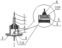 Эти диоды изготавливают в виде пластинки 7 с электронной проводимостью, укрепленной на металлическом держателе 8, представляющим собой нижний контакт P-N- перехода. В пластинках 7 из германия или кремния методом сплавления или диффузии создается плоский по форме электронно- дырочный переход 9. В германиевых диодах, изготавливаемых сплавным методом, для получения электронно- дырочного перехода 9 в пластинку германия с электронной проводимостью добавляют каплю расплавленного индия, а затем нагревают. При нагревании плавящийся индий диффундирует в основной полупроводник, образуя в нем слой 10 с дырочной проводимостью. Верхний контакт представляет собой массивную деталь 6, способную пропускать значительные токи большего по площади перехода. Германиевая пластинка 7 с P-N- переходом помещается в металлический корпус 5, герметизированный сверху стеклянным изолятором 4 с трубкой 3, в который помещены внутренний вывод 2 и наружный вывод 1. В плоскостных кремниевых диодах в пластинку из кремния с электронной проводимостью вместо индия вплавляют алюминиевый столбик, который создает область с дырочной проводимостью.