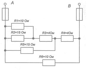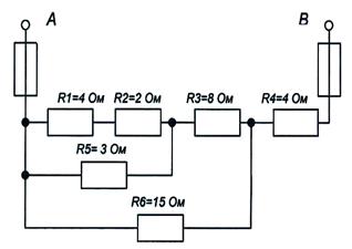 1) эквивалентное сопротивление цепи относительно вводов АВ;