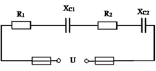 XС1=24 Ом XС2 =56 Ом U=200 В