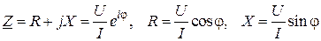 Входящие в таблицу данные имеют следующий смысл: j— разность фаз между напряжением и током в цепи при данном виде нагрузки (активная, индуктивная, ёмкостная); сosj — коэффициент мощности; I, U — ток и напряжение в цепи. в) По показаниям прибора определить: S = U I, В×А — полную мощность электрической цепи; Р = U I cosj, Вт — активную мощность; Q=U I sinj, ВАр — реактивная мощность; R — активное сопротивление цепи; L — индуктивность цепи; С — ёмкость цепи. При расчете сопротивлений следует помнить, что