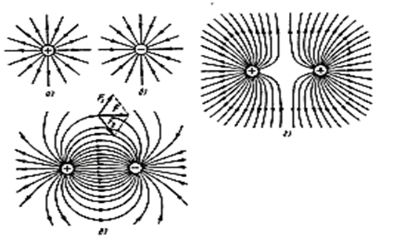 ЭЛЕКТРОСТАТИЧЕСКОЕ ПОЛЕ Одним из видов материи является электрическое поле. Электрическое поле действует на заряженное тело, помещенное в это поле. Направление сил действия поля изображается силовыми линиями. Для уединенных зарядов линии поля являются радиальными силовыми линиями (рис.1а,б)
