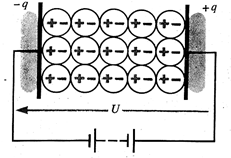 а б Рис.25 Электроны смещаются в направлении противоположном полю. Это явление ограниченного смещения заряженных частиц в молекуле или изменение ориентации дипольных молекул под действием внешнего электрического поля называется поляризацией диэлектрика. Таким образом, поляризация представляет собой упругое смещение электрических зарядов в веществе диэлектрика. На границе между металлической пластиной и диэлектриком распределены два вида заряженных частиц: свободные частицы металлической пластины, которые создают внешнее электрическое поле (напряженностью Напряженность результирующего поля
