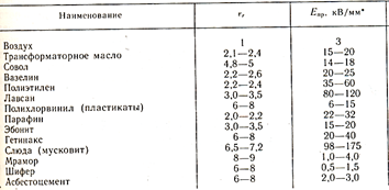 Таблица 4 Диэлектрическая проницаемость (относительная) и электрическая прочность некоторых материалов