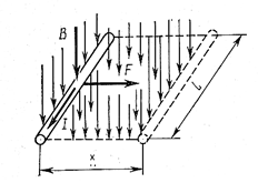 где Направление электромагнитной силы всегда перпендикулярно плоскости, в которой лежат провод и линии магнитной индукции и его удобно определять по правилу левой руки. Если проводник с током под действием сил поля переместился на расстояние х (рис.46 б), то работа совершаемая полем