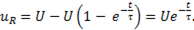 Видно, что напряжение на резистивном элементе убывает по экспоненциальному закону. Ток, проходящий по резистивному элементу, а следовательно, и по цепи (рис.130б),