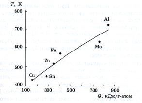Рис.200 Корреляция между теплотой окисления и температурой саморазогрева при окислении нанопорошков металлов.