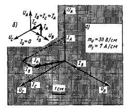 L LIA = IA / m1 = 12,7 А / 7 А/см = 1,81 см; LIB = IB / m1= 6,35 A / 7 A/см = 0,9 см; LIC = IC / m1 = 25,4 А / 7 А/см = 3,62 см. 4 Откладываем векторы фазных напряжений 5 Вдоль векторов фазных напряжений (φ = φА = φВ = φС = 0).