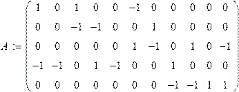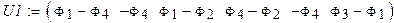 Составим матрицу напряжений на ветвях. Учитывая большую длину, разделим её на две матрицы, а затем составим одну матрицу с помощью оператора слияния строковых матриц.