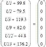 Для составления матричного уравнения по второму закону Кирхгофа подготовим столбцовые матрицы напряжений и нулей.
