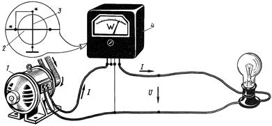Ваттметр 4 (рис.8.14) имеет две катушки: токовую 2, которая включается в цепь последовательно, и напряжения 3, которая включается в цепь параллельно. Ваттметр является прибором, требующим при включении соблюдения полярности. Поэтому его зажимы, к которым присоединяются проводники, идущие со стороны источника 1, обозначают звёздочками.