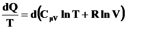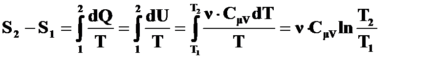 где Q — сообщаемое системе тепло. 6. Изменение энтропии при обратимом изохорическом процессе (V=const):