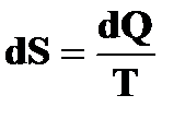 где S — энтропия системы. Энтропией S системы называется однозначная функция состояния, изменение которой равно количеству тепла, подводимому к системе обратимо, деленному на абсолютную температуру в момент подведения этого тепла: