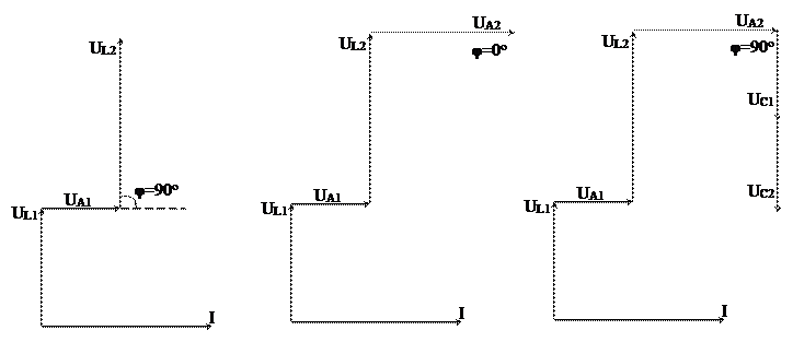 г) вектор напряжения на втором индуктивном сопротивлении UL2 строим от конца вектора UА1 в сторону опережения на 900 (вверх) (рисунок 18)