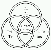 Рис. 5. Символическое изображение Пресвятой Троицы. Надпись в центре «unitas» – один (единение, единство). Три слога «tri-ni-tas» – три (трое), распределены во внешних секторах