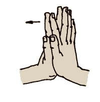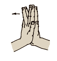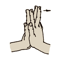 Ладони соединяем так же, как и в предыдущем упражнении. Указательный палец левой руки с некоторым усилием отклоняет указательный палец правой руки (рис. 24) насколько возможно дальше. Затем правый указательный палец левой руки отводим влево. Пальцы при этом остаются соединенными и прямыми. Остальные пальцы стараемся держать соединенными и в строго вертикальном положении. Затем это упражнение необходимо проделать со всеми пальцами поочередно. Это движение показано для профилактики полиартрита - против отложения солей в суставах. Это, разумеется, можно сказать и обо всех пальцевых упражнениях. 6. “Гребешок”