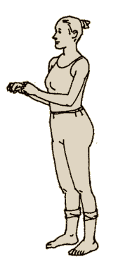 Как приятно ощутить тягучую усталость после успешно выполненного упражнения. Встряхнем пальцы рук два-три раза и мысленно похвалим себя за выполненные задания. Одновременно с движениями кистей поднимаемся на носки и опускаемся на пятки. Ощущаем вибрацию (рис. 31).