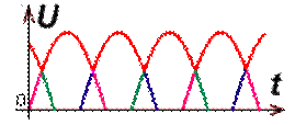 80: Трёхфазный выпрямитель — устройство, применяемое для получения постоянного тока из трёхфазного переменного тока. Выпрямление переменного тока основано на односторонней проводимости диода. После диода ток в цепи течет в одном направлении, то есть становится постоянным. Различают однополупериодную и двухполупериодную схемы выпрямителей. А число фаз, в принципе, не имеет значения. Переменный ток может быть и трехфазным и шестифазным. Сколько фаз столько и выпрямителей. Трёхфазные выпрямители обладают лучшей характеристикой выпрямления переменного тока – меньшим коэффициентом пульсаций выходного напряжения по сравнению с однофазными выпрямителями. Связано это с тем, что в трёхфазном электрическом токе синусоиды разных фаз «перекрывают» друг друга. После выпрямления такого напряжения, сложения амплитуд различных фаз не происходит, а выделяется максимальная амплитуда из значений всех трёх фаз входного напряжения. Схема трехфазного выпрямителя: