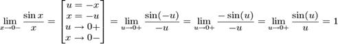 Правый и левый односторонний пределы существуют и равны 1, а значит и сам предел равен 1. Следствия