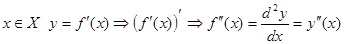 Производные высших порядков. Df: Пусть ф-ия Каждому значению Х соответствует единственное значение Если она окажется дифф. на Х, то мы можем вычислить следующую