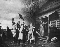 Живопись 1860-х годов. Под влиянием демократических идей уже в 60-е годы появились картины, будившие мысль, призывавшие зрителя задуматься над русской действительностью и бороться с окружающим злом. Художники-демократы продолжали путь, начатый еще П. А. Федотовым. Бедственное положение народа они противопоставляли благополучию господствующих классов, стремясь вызвать ненависть и презрение к эксплуататорам и доброе, сердечное отношение к простому обездоленному человеку.