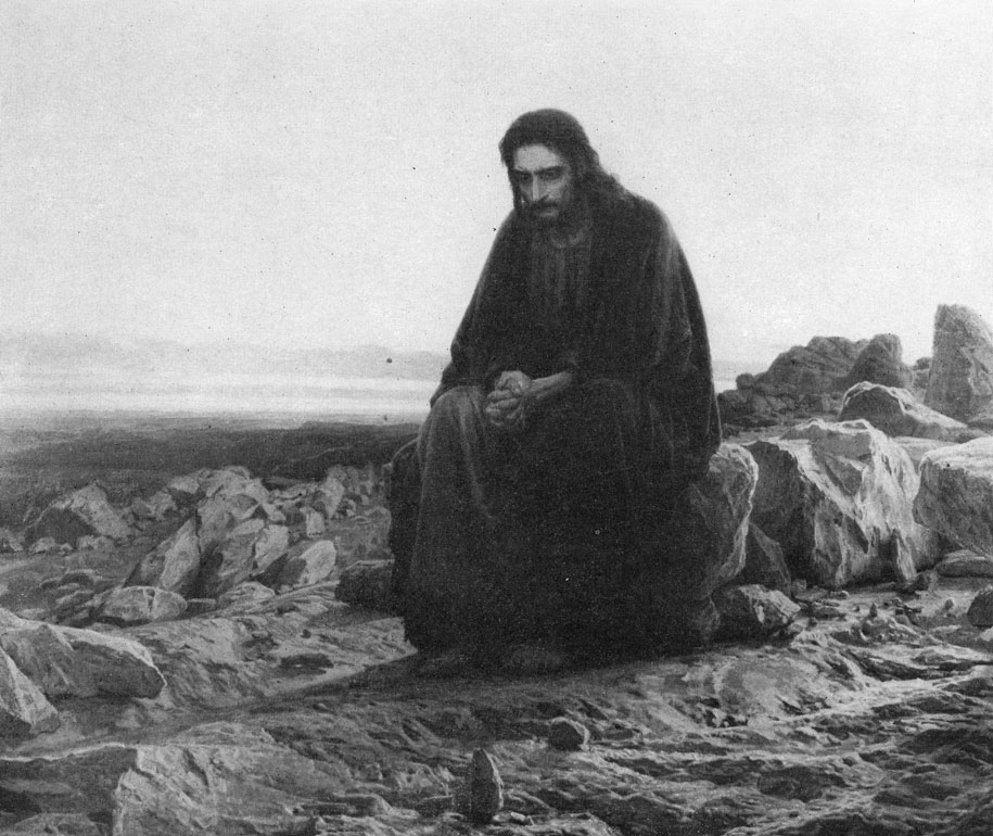 В подавляющем большинстве своих лучших портретов Крамской создавал положительные образы, увековечивая представителей передовой мыслящей русской интеллигенции, а также и крестьян. Портреты грозного полесовщика, олицетворяющего народный протест, мудрого доброго Мины Моисеева свидетельствуют об истинном патриотизме Крамского, о понимании им сильных сторон национального характера. Сюжетно-композиционные картины - существенное звено в творческом наследии Крамского. Особенность многих из них заключается в их родстве с портретами художника. В этих картинах решаются характерные именно для портрета психологические и композиционные задачи. Таковы, например, "Христос в пустыне", "Неутешное горе", "Некрасов в период последних песен", "Крестьянин с уздечкой", "Неизвестная". Наиболее значительна из них картина "Христос в пустыне" (1872, ил. 141). Художник облек свои мысли в форму своеобразного иносказания, как он сам говорил, в "язык иероглифов". Истинное содержание этой картины вовсе не рассказ о Христе, а сокровенные думы Крамского о судьбах передовых людей России, о тех замечательных ее сынах, которых освободительное движение увлекало на путь самоотречения и жертвы. Христос Крамского - идеал прекрасного человека, умеющего победить в себе собственное Я, принести в жертву общечеловеческим интересам корыстные и честолюбивые интересы, обрести в этом свое счастье.
