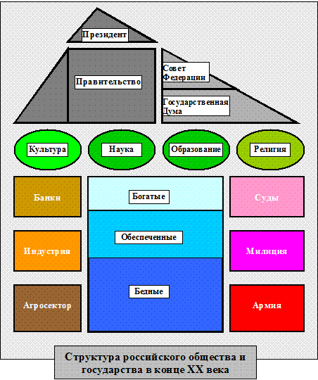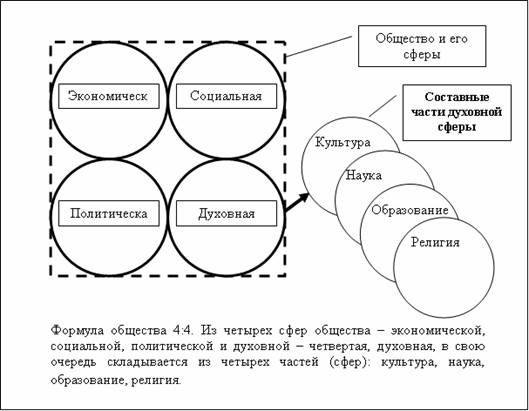 Соответственно четырем сферам общества выделяют четыре фундаментальных института общества, и четвертый - духовный - включает культуру, науку, религию и образование.