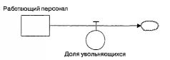 — Это уже в некотором роде модель, однако в ней отсутствует динамика — не показаны поток увольняющихся и поток новичков, которых вы набираете на освободившиеся рабочие места. Если попробовать смоделировать результат прямо сейчас, мы получим константу — все те же сто человек — А теперь изобразим на нашей модели канал для потока увольняющихся… на клапане напишем, какова доля увольняющихся… Исходная цифра — четыре человека в месяц.