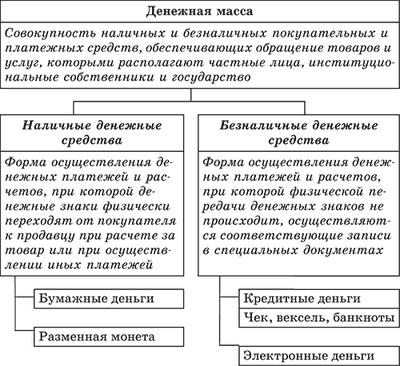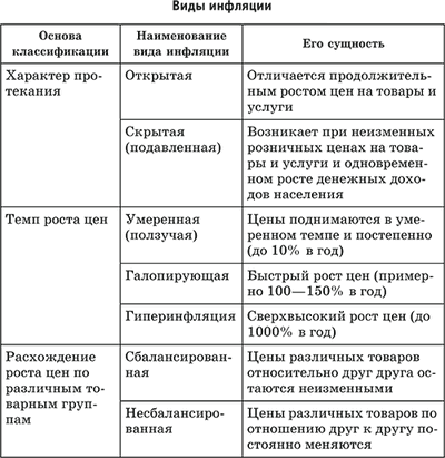 Бумажные деньги – это денежные знаки, не имеющие стоимости и заменяющие полноценные золотые деньги в функции средства обращения. Монета – это слиток металла особой формы и пробы. Кредитные деньги – это долговые обязательства, появление которых связано с развитием кредитных отношений. Чек – письменное распоряжение лица, имеющего текущий счет, о выплате банком денежной суммы или ее перечислении на другой счет. Вексель – письменное долговое обязательство, в котором указана величина денежной суммы и сроки ее уплаты должником. Он находится в обороте в качестве денег. Банкноты – банковские билеты – денежные знаки, выпускаемые в обращение центральными эмиссионными банками. От бумажных денег банкноты отличаются тем, что имеют двойное обеспечение – кредитное (коммерческим векселем) и металлическое (золотым запасом банка); выпускаются не государством, а центральным эмиссионным банком; выполняют функцию средства платежа. Происходит замена банкнот, векселей, чеков кредитными карточками, которые осуществляют функцию денег как средства платежа. Электронные деньги – это система безналичных расчетов, производимых посредством использования электронной техники, охватывающая банки, предприятия розничной торговли, бытовых услуг и т. д. Появились смарт‑карточки, которые представляют собой электронную чековую книжку. С возникновением и распространением бумажных, кредитных и электронных денег все более остро встает проблема инфляции. Инфляция (от лат. inflatio – вздутие) – обесценивание бумажных денег, проявляющееся в форме роста цен на товары и услуги, не обеспеченное повышением их качества. Основные источники инфляции: повышение номинальной заработной платы, например, под давлением профсоюзов, когда ее увеличение не обусловлено повышением производительности труда; увеличение цен на сырье и энергию вследствие чего нарушается механизм предложения; увеличение налогов. Различают два типа инфляции. Инфляция спроса – равновесие спроса и предложения нарушается со стороны спроса. Возникает при полной занятости, когда растет объем заработной платы, появляется избыточный совокупный спрос, который толкает цены вверх. Инфляция предложения (издержек) – увеличение издержек производства (вследствие роста заработной платы и за счет роста цен на сырье и энергию) вызывает рост цен на товары и услуги. Инфляция ведет к замедлению экономического роста. Нулевые темпы развития экономики свидетельствуют о стагнации (от лат. stagnum – стоячая вода). Если застой сопровождается инфляцией, такое состояние экономики называют стагфляцией. В реальности сложно разделить два типа инфляции, но если во втором случае заложен механизм самоизлечения, поскольку снижение предложения ведет к сокращению производства и занятости, т. е. к спаду и дальнейшему сокращению расходов и постепенному выползанию из кризиса, то в случае с инфляцией спроса необходимо вмешательство государства.