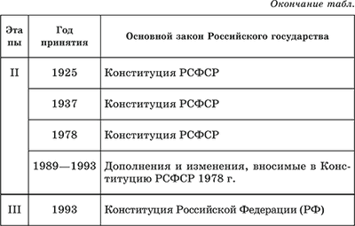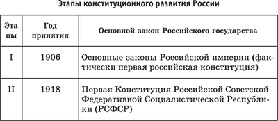 Вопрос о новой Конституции РФ был поставлен на I Съезде народных депутатов России в 1990 г.: была образована Конституционная комиссия для разработки проекта нового Основного закона. Такой проект был подготовлен и рассмотрен Верховным Советом РФ и Съездом народных депутатов РФ, но он носил идеологизированный характер. Весной 1993 г. по инициативе Президента РФ был разработан новый проект Конституции, для завершения подготовки которого летом 1993 г. созвали Конституционное совещание. Осенью 1993 г. Конституционное совещание продолжило работу над проектом нового Основного закона РФ, который был вынесен на всенародное голосование, состоявшееся 12 декабря 1993 г. Согласно Положению о всенародном голосовании по проекту Конституции РФ для принятия нового Основного закона России требовалось, чтобы более 50 % избирателей, участвовавших в голосовании, проголосовали за его принятие (при условии, что в голосовании участвовало более половины всех избирателей). Новая Конституция РФ была принята 12 декабря 1993 г. всенародным голосованием и вступила в силу с момента опубликования его результатов – 25 декабря 1993 г. С ее принятием завершился советский период развития российской государственности. Конституция РФ занимает центральное место в правовой системе общества.