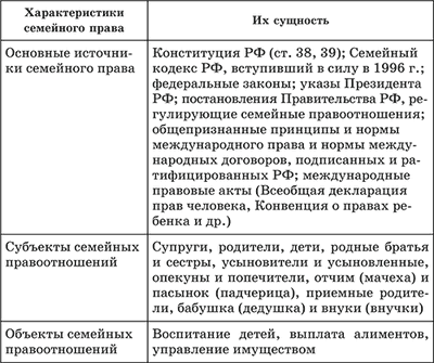 Семья – круг лиц, связанных личными неимущественными и имущественными правами и обязанностями, вытекающими из брака, родства, усыновления или иной формы принятия детей на воспитание. Регулируются семейные правоотношения особой отраслью российского права – семейным правом. Семейное право – это система правовых норм, регулирующих личные и производные от них имущественные отношения, возникающие из брака, кровного родства, принятия детей в семью на воспитание.