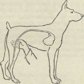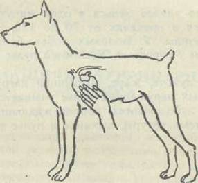 Кроме измерения температуры и подсчета частоты дыхания, для определения заболевания у собаки следует произвести также подсчет сердечных толчков и пульса. Сердечный толчок легко ощутить, приложив ладонь к грудной клетке собаки слева, немного ниже лопатки. У собак мелких пород сердечный толчок можно прощупать и с правой стороны грудной клетки. Пульс можно подсчитать на внутренней поверхности бедра, приложив пальцы к бедренной артерии. У собак мелких пород бедренная артерия ощущается под пальцами в виде тонко пульсирующей нити, у собак крупных пород — в виде шнура.