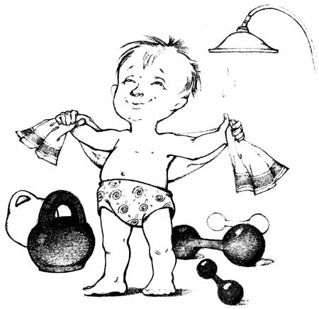 Так что, не закаливать? Закаливать, но правильно и понимать под закаливанием следует не кратковременные дозированные воздействия солнцем, воздухом и водой, а принципиальную коррекцию образа жизни. Начинать не с обтираний и обливаний, не с открывания форточки на 20 секунд. Начинать с решения глобальных вопросов: распорядок дня, интенсивность обучения, еда, сон, детская комната, одежда, спорт. Раз и навсегда определить некие правила, обязательные для исполнения: гулять в любую погоду и всячески поощрять двигательную активность, никогда не заставлять есть, свести до минимума контакты с бытовой химией, предоставить возможность одеваться самому (самому выбирать количество вещей). Если ребенок не вылезает из болезней, определиться с дополнительными учебными нагрузками (музыка, иностранные языки). Лишние знания при дефиците здоровья не делают человека счастливым. Привести в порядок детскую комнату, выкинуть накопители пыли, каждый день – влажная уборка. Не свежий воздух дозировать, а дозировать телевизор, дозировать уроки, дозировать шашки‑шахматы и крестики‑нолики. Дарить не игрушки и шоколадки, дарить свежий воздух – не из окна, а в лесу, цветы – не в вазе, а в поле, воду – в реке, а не из водопровода. Только такой образ жизни может сделать ребенка счастливым. А практическая реализация подобных действий требует от родителей не только желания, но и времени. Это гораздо сложнее и хлопотнее, чем обтирать теплой водичкой пять минут в день. Прямая связь здоровья ребенка и возможностей родителей находить время для укрепления этого самого здоровья представляется очевидной. Но имеем, что имеем – печальную окружающую среду, низкий уровень материального благосостояния, постоянный поиск средств к существованию, дефицит здоровья у самих родителей. Легко сказать: «все свободное время – гулять». Надо ведь иметь свободное время. Легко сказать: «прохладный душ по утрам». Надо ведь иметь горячую воду – без горячей воды трудно сделать прохладную, только холодная получается. Рука не поднимается проветривать комнату, в которой и без проветривания +15 °C. Перечень причин, мешающих закаливанию, можно продолжать, но сил мириться с детскими болезнями уже не осталось, а желание делать хоть что‑нибудь усиливается с каждым днем. Важный аргумент в пользу необходимости действий – болезнь ребенка сама по себе требует времени и немалых средств (лекарства, диета, финансовые потери в связи с невозможностью ходить на работу). Итак, конкретные рекомендации, долгожданные ответы на извечный вопрос «что делать?». Понять, что имеется два варианта действий. Первый вариант – относительно пассивный – коррекция образа жизни. Что, как и в каком направлении корректировать, мы уже определили. Сразу же заметим – подобных перемен совершенно достаточно для постепенного возврата утраченного здоровья. Второй вариант – активный. Перемены образа жизни плюс некие дополнительные мероприятия (те самые закаливающие процедуры), позволяющие вернуть утраченное заметно быстрее. Рекомендуемая схема активного варианта действий примерно такова. Начать с физических нагрузок. Проснуться на час раньше обычного и в любую погоду устроить пробежку. Не бег на месте в комнате, а на свежий воздух! Пробежались 5–10 минут (никуда не торопимся, спокойно, никаких рекордов на скорость и дально