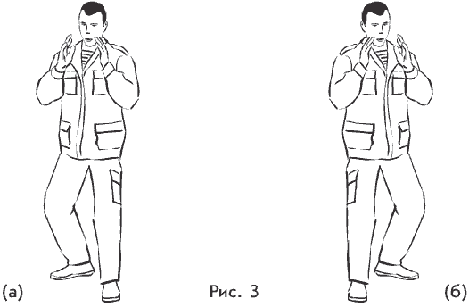Базовая стойка – оптимально удобное положение тела, позволяющее выполнить необходимые действия в рукопашном бою. Эта стойка является основной (учебной) (рис. 1, 2).