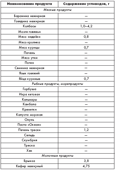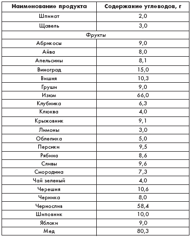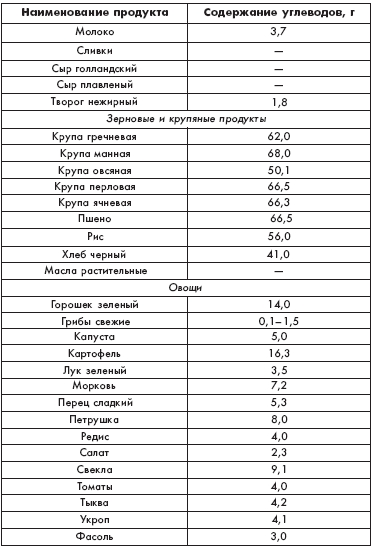 Таблица 3 Содержание углеводов в часто употребляемых продуктах 100 г