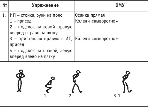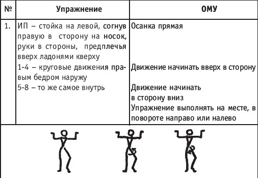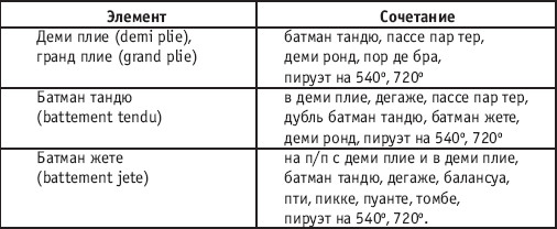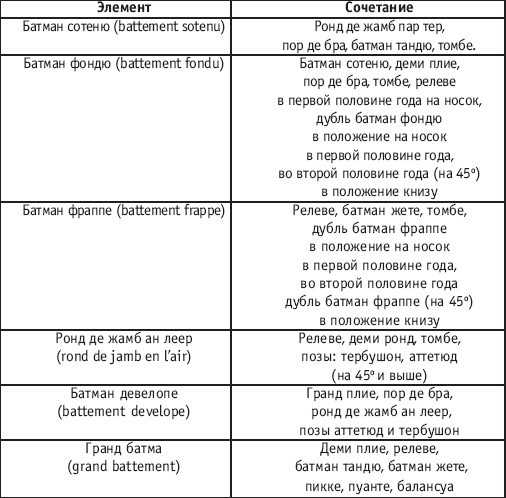 Урок хореографии в многолетней подготовке спортсменов 104 Примечание: Некоторые элементы экзерсиса необходимо начинать с сочетающегося, например, батман фондю в сочетании с батман сотеню: 1–4 – батман сотеню вперед, 5–8 – дубль батман фондю. РЕКОМЕНДУЕМЫЕ ХОРЕОГРАФИЧЕСКИЕ ДВИЖЕНИЯ ДЛЯ УЧЕБНО-ТРЕНИРОВОЧНОЙ ГРУППЫ ТРЕТЬЕГО ГОДА ОБУЧЕНИЯ РАЗНОВИДНОСТИ «ВЕРЕВОЧКИ» В РУССКОМ СТИЛЕ