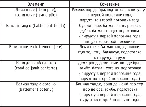 Урок хореографии в многолетней подготовке спортсменов МЕТОДИКА ОБУЧЕНИЯ ЭЛЕМЕНТАМ КЛАССИЧЕСКОГО ЭКЗЕРСИСА В УЧЕБНО-ТРЕНИРОВОЧНОЙ ГРУППЕ ЧЕТВЕРТОГО ГОДА ОБУЧЕНИЯ УТГ-4 Задачи хореографической подготовки в учебно-тренировочной группе четвертого года обучения УТГ-4: 1. Совершенствование пройденного в группе УТГ-3. 2. Методика обучения пируэта на 540°, 720° у опоры и на середине. 3. Методика обучения элементам экзерсиса на полупальцах (п/п). 4. Совершенствование пластики и координации движений в сочетании с элементами ИВС. 5. Методика обучения тан лие на 90° в первой половине года обучения, с пируэтом на 540°, 720° во второй половине года обучения. 6. Методика обучения выполнения элементов экзерсиса на середине в повороте на 90°, 180°, 360° – турлян. Элементы: батман тандю, батман жете, ронд де жамб пар тер, батман фондю, батман фраппе, гранд батман, позы тербушон, аттетюд, равновесие с захватом и без захвата. Турлян – выполнение элементов экзерсиса в повороте на носке опорной ноги с фиксацией пятки после поворота. 7. Методика обучения хореографическим прыжкам в повороте на 360° (ан турнан): соте, шажман де пье, эшапе, сиссон увер, сиссон томбе. 8. Составление этюдов (части вольных упражнений и композиций). Рекомендуемые упражнения у опоры и их сочетания