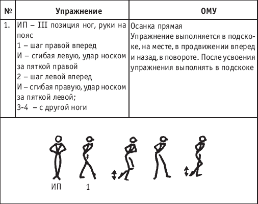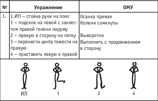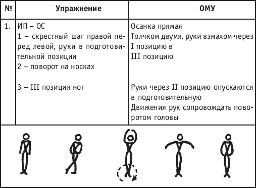МЕТОДИКА ОБУЧЕНИЯ ЭЛЕМЕНТАМ КЛАССИЧЕСКОГО ЭКЗЕРСИСА В УЧЕБНО-ТРЕНИРОВОЧНОЙ ГРУППЕ ВТОРОГО ГОДА ОБУЧЕНИЯ УТГ-2 Задачи хореографической подготовки в учебно-тренировочной группе второго года обучения УТГ-2. 1. Совершенствование осанки. 2. Совершенствование координации движений у опоры и на середине. 3. Развитие устойчивости «апломба» в упражнениях на полупальцах у опоры и на середине в сочетании с элементами ИВС (стойки на руках, перевороты в сторону, вперед, назад, равновесия, прыжки). 4. Выполнение элементов экзерсиса у опоры и середине с элементами ИВС. 5. Методика обучения элементов у опоры: пуанте, пти батман, дубль батман тандю, дубль батман фондю, дубль батман фраппе в I половине года обучения в положении на носок, во II половине года обучения вперед книзу, батман сотеню, томбе, ронд де жамб ан леер. Методика обучения: Double battement tendu (дубль батман тандю) – при выполнении дубль батман тандю центр тяжести туловища распределяется на опорной ноге. Из положения ноги на носок в любом из направлений (вперед, в сторону, назад) стопа мягко опускается с касанием пяткой пола, сохраняя выворотное положение ноги и не допуская движения всем туловищем в сторону опускающей пятки, и скольжением стопы по полу возвращается в ИП. Piece (пикке) – «колющее» – то есть быстрое, четкое касание носком пола, сохраняя выворотное положение стопы. Центр тяжести – на опорной ноге, мышцы туловища и ног максимально подтянуты. Упражнение выполняется по 2, 4, 8 раз в одну сторону в зависимости от сочетания с другими элементами. Pounte (пуанте) – однократное, мягкое касание носком пола, сохраняя «выворотное» положение ноги. Центр тяжести – на опорной ноге, мышцы туловища и ног максимально подтянуты. Petit battement (пти батман) – маленькие, мелкие батманы. Выполняются «крестом» по 4, 8 раз в одном направлении или в сочетании с другими элементами по I, V позициям. Выполняется быстрым скольжением ноги, успевая дотягивать фаланги пальцев в положение на носок или в положение книзу, сохраняя «выворотное» положение ног. Balance (балансе) – выполняется по первой позиции, скользящим движением всей стопой в положение вперед книзу – назад книзу или наоборот, сохраняя выворотное положение ног. Выполняя движение вперед с полунаклоном назад и поворотом головы в сторону движения. Выполняя движение назад с полунаклоном вперед, с поворотом головы в сторону движения. Tombee (томбе) – выполняется на V-ой позиции «крестом» по одному, из стойки на носках скольжение носком согнутой ноги по опорной до уровня колена и разгибанием в одном из направлений (вперед, в сторону, назад) с распределением центра тяжести на разгибающую ногу в выпад. Возвращение в ИП скользящим движением, приставляя к опорной. По мере усвоения элемента приступить к выполнению упражнения в прыжке и в сочетании с другими элементами. Double battement fondu (дубль батман фондю) – выполняется из пятой позиции или из подготовительного положения в сторону на носок, или в сторону книзу с двойным полуприседом на опорной ноге, рабочая нога в положении sur le cou de pied впереди или сзади, сохраняя «выворотное» положение ног. Выполняется «крестом» по одному, два, четыре в зависимости от сочетания с другими элементами. Выполнять мягко и плавно, одновременно сгибая и разгибая обе ноги. Double battementfrappe (дубль батман фраппе) – выполняется из подготовительного положения в стор