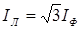 Линейный ток в случае симметричной нагрузки при соединении "треугольником" будет равен: