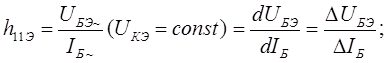 Определение h-параметров по статическим ВАХ Все h-параметры определяются в исходной рабочей точке. ИРТ задается режимом по переменному току и определяется UКЭ и состоянием UБЭ0 и IБ0.