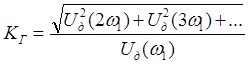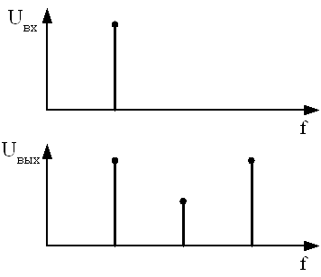 При прохождении сигнала через усилитель возможны нелинейные искажения, связанные с наличием в схеме усилителя нелинейных элементов (БПТ, ПТ, диоды, электронные лампы). Динамическая характеристика усилительного элемента линейна с определенной степенью точности, поэтому можно рассматривать усилитель как линейный преобразователь, да и то в пределах ограниченных значений входного сигнала. Из-за нелинейности характеристики входной сигнал с достаточно большим значением амплитуды будет приводить к нелинейным искажениям, т.е. преобразование будет нелинейным. Пример: гармонический сигнал с достаточно большой амплитудой, спектр у него монохроматический, преобразование – нелинейное, выходной сигнал – не гармонический и в спектре уже несколько спектральных составляющих. В результате нелинейного преобразования происходит обогащение спектра. Нелинейные искажения оцениваются коэффициентом гармоник.