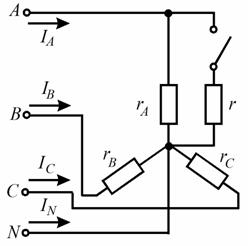 173.Как изменятся токи цепи на рисунке после замыкания выключателя, если rA=rB=rC=r. +1) IA уменьшится. 2) IB не изменится. 3) IC не изменится. 4) IN увеличится.
